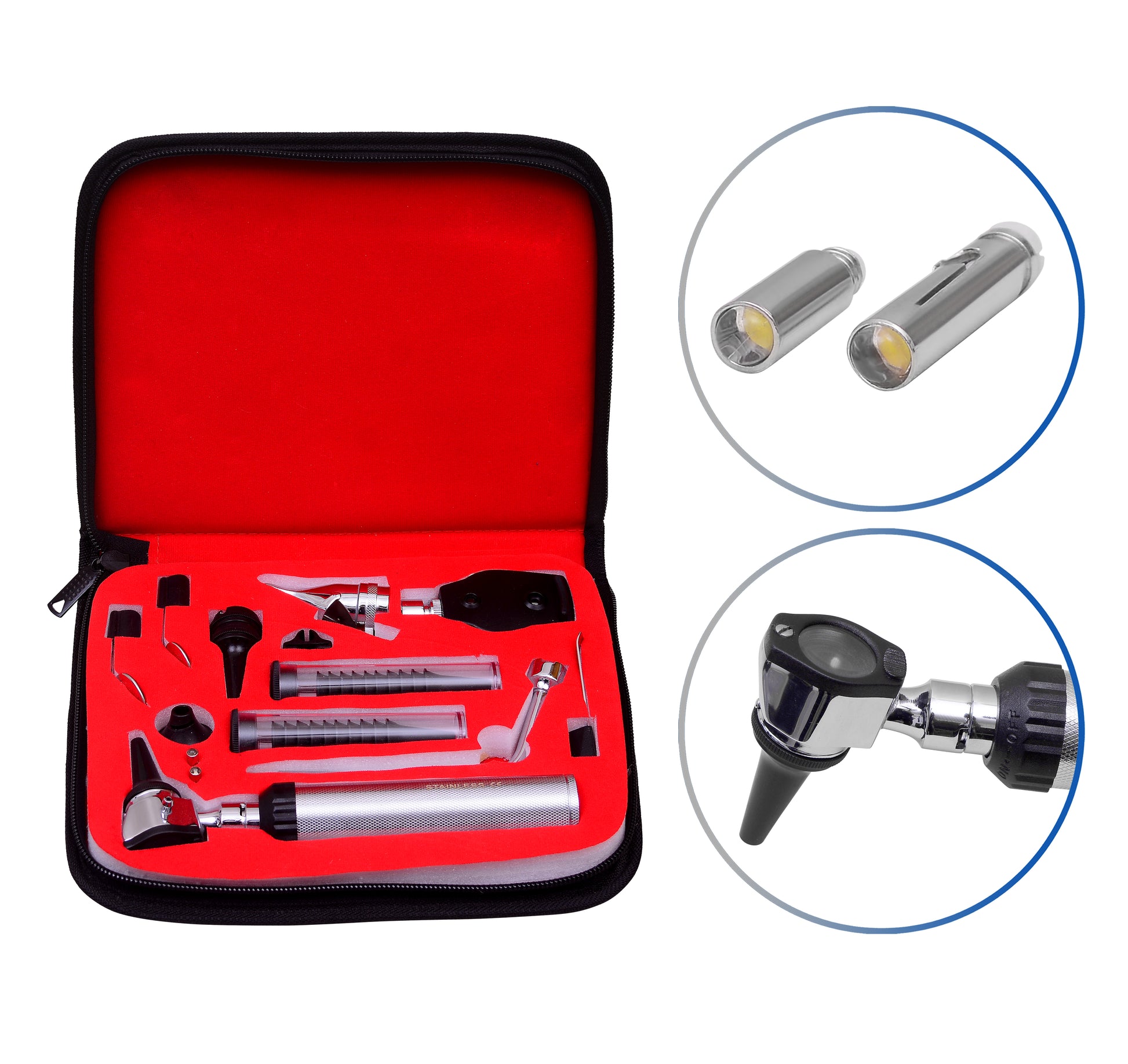 *NEW*ENT (Ear,Nose &Throat) Diagnostic,Otoscope,Ophthalmoscope set W/Zipper Case
